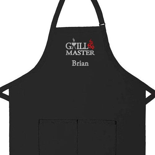 Perfect for the dad who loves grilling. This apron is made in the USA has an embroidered Grill Master design on the front, plus you can add your dads name to personalize just for him. Apron has two pockets in the front, is stain resistant and machine washable. Available in 4 colors.